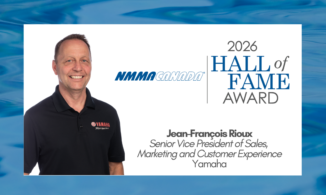 NMMA Canada recently announced the induction of industry veteran Jean-François Rioux into the NMMA Canada Hall of Fame. Rioux, senior vice president of sales, marketing and customer experience at Yamaha Canada, was recognized during the NMMA Canada State of the Industry Breakfast at the Toronto International Boat Show.
