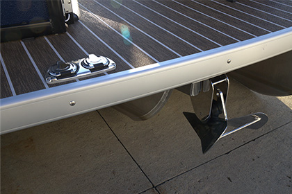 Judge Robert Beringer, “No one likes dirty anchors! So often anchors on pontoon boats are an afterthought, something that needs to be clumsily retrieved and heaved overboard; and retrieving it can be dirty and difficult. But Premier Marine has eliminated this onerous chore with their digitally controlled Delta plow anchor that fully deploys from the bow foot controls or helm, and fully recedes into its own locker within the PTX center tube.”